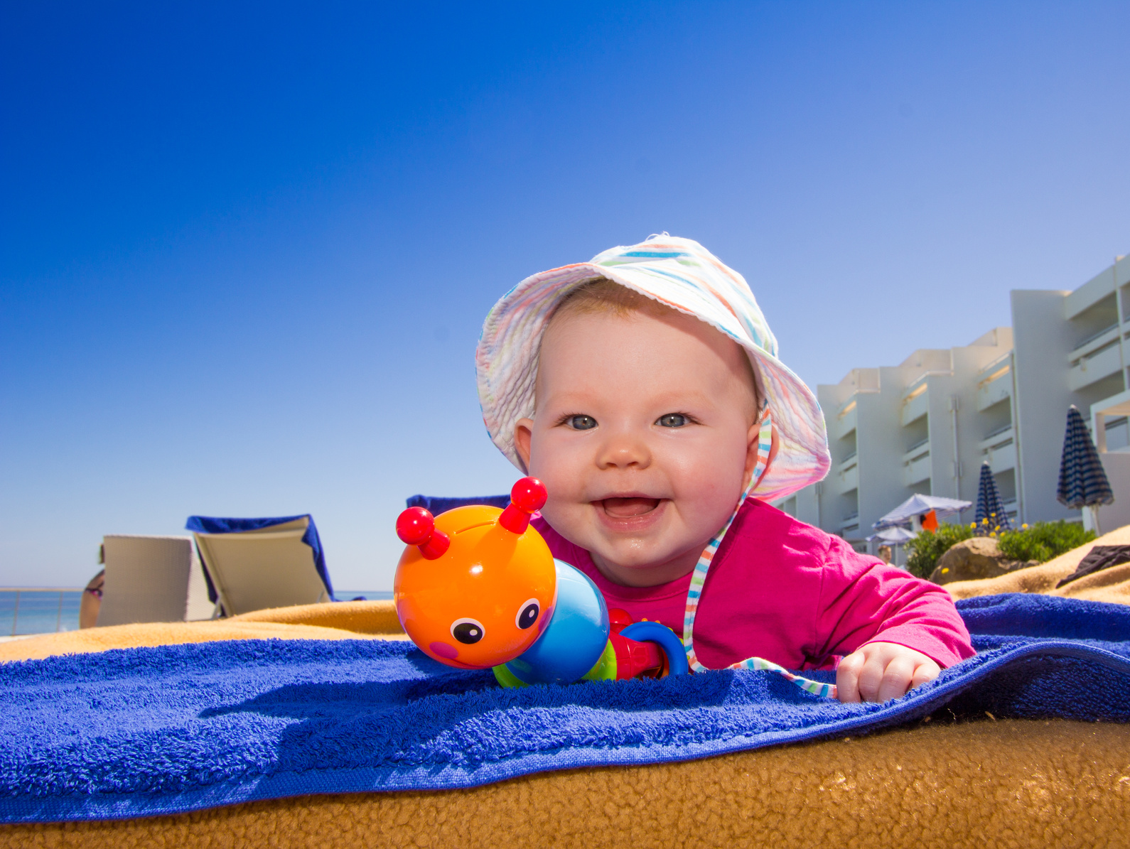 Los niños nunca deben exponerse directamente al sol, de ahí que los gorros y camisetas sean imprescindibles siempre que vayan a estar expuestos durante un periodo prolongado de tiempo.