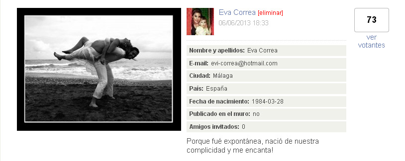 Y por supuesto nuestras felicitaciones a la segunda foto mas votada.